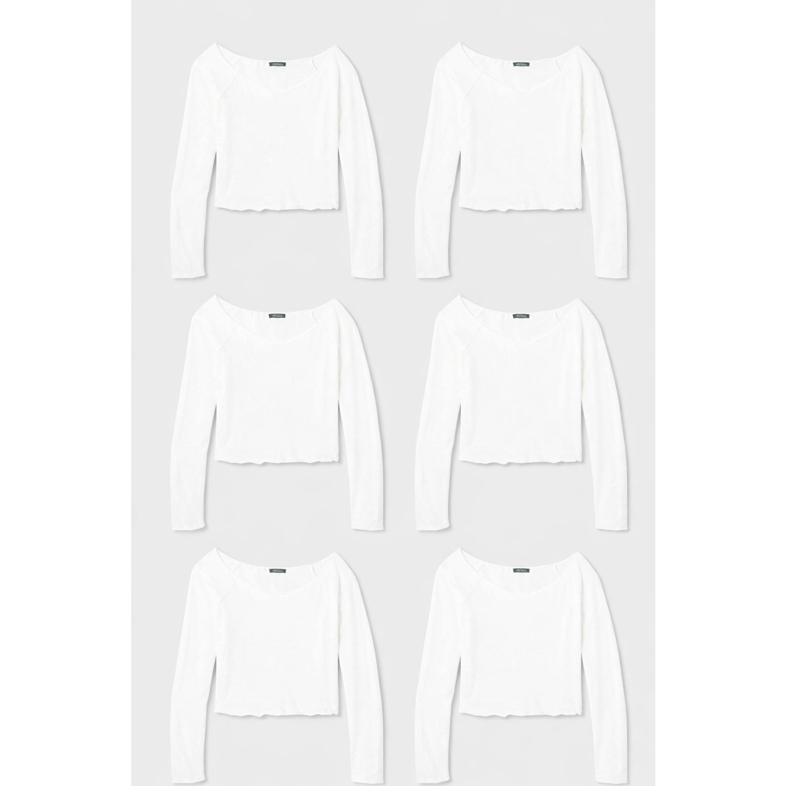 The product is a 6-pack of M women's long sleeve V-neck t-shirts from Wild Fable in white. Made from a blend of spandex and cotton in a knit fabric, these pullover shirts are machine washable and feature a classic solid pattern. The cropped style and regular fit make them ideal for casual occasions in any season. With easy care, lightweight, and stretchy features, these t-shirts offer both comfort and style for everyday wear.
