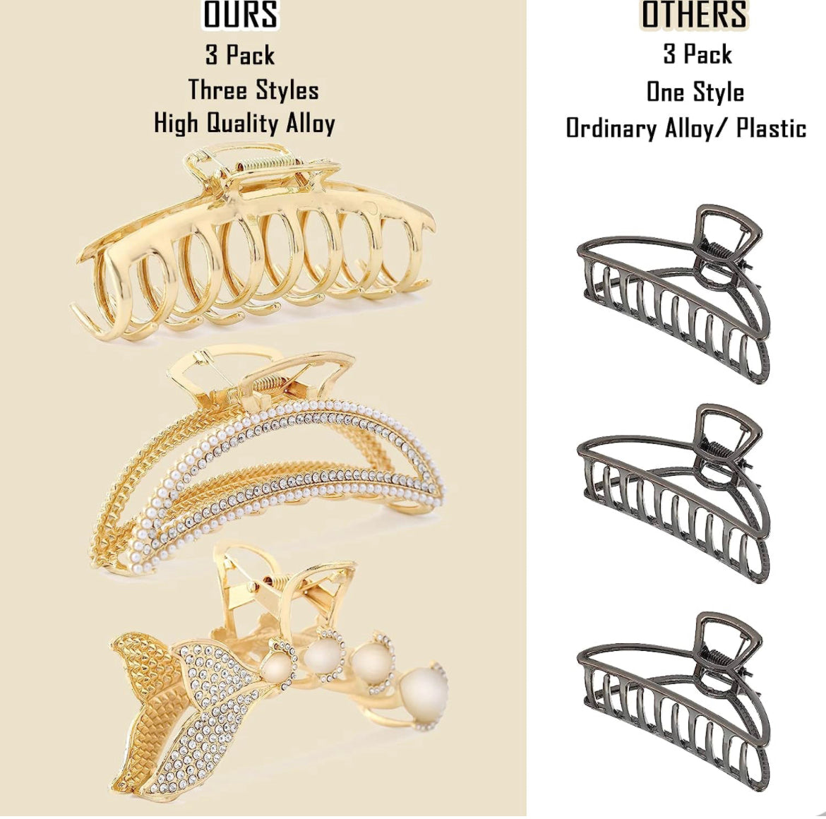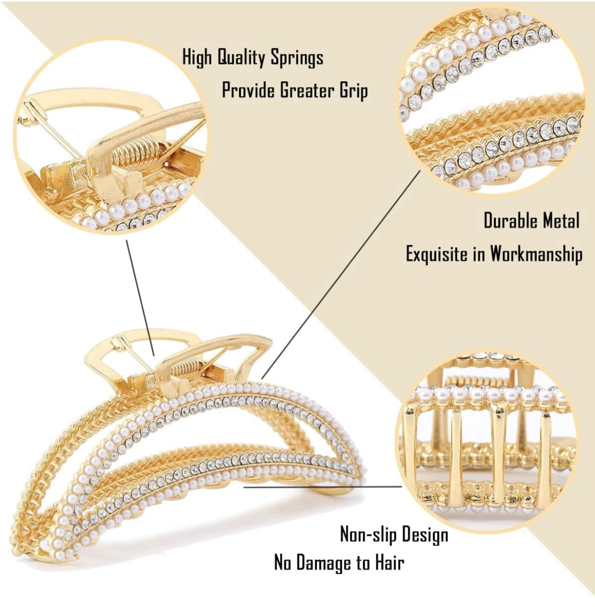 Garras de pelo grandes de metal para mujer, garras de pelo de luna para cabello grueso, paquete de 5 unidades de 4.3 pulgadas, elegantes garras de diamantes de imitación de perlas doradas para niñas, regalo para mamá, esposa, hija, novia, amigas